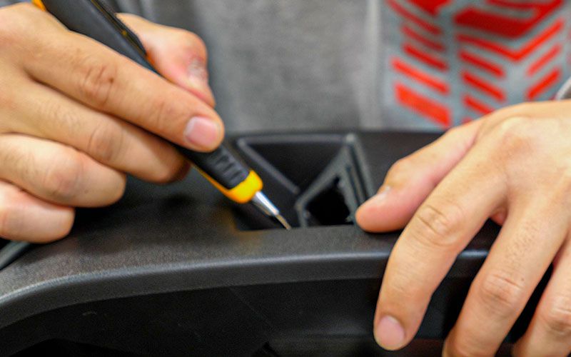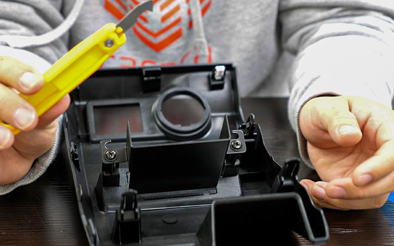 ステーとブラケットを外しました。アクリルカッターでひたすら彫ります。