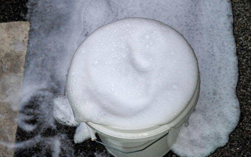 例えば、僕がいつも使っているバケツは20L水が入るものなのですが、『カーシャンボール』を入れてカーシャンプーを作っている時に溢れてしまいました。