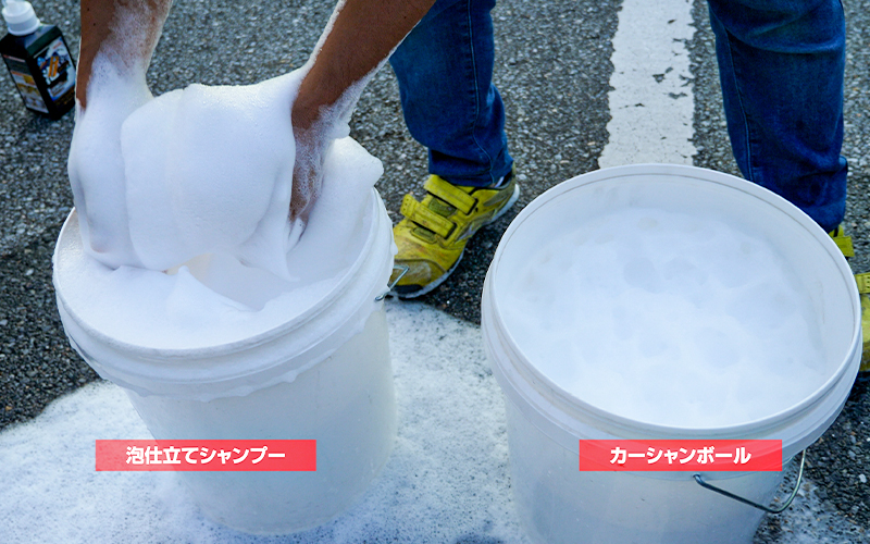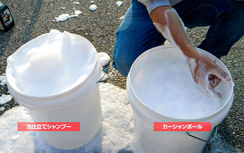 洗車中も泡が目立つのは『泡仕立てシャンプー』の方なのではないでしょうか。
