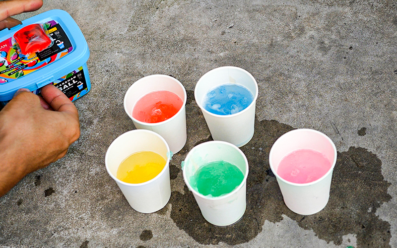 - バケツにカーシャンボールを1つ入れる。