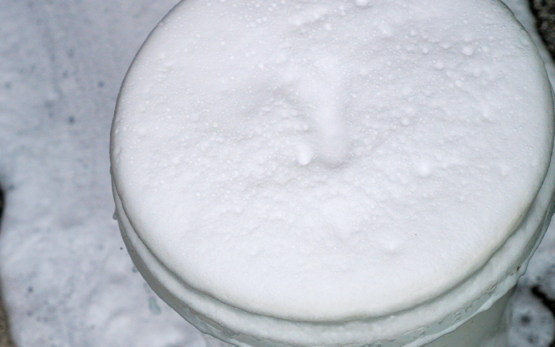 ちょっと泡を触ってみました。感触としてはそんなに硬い泡ではありません。