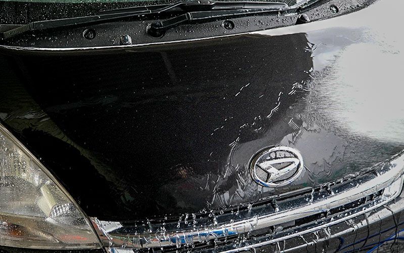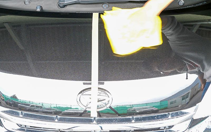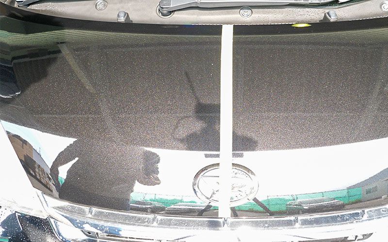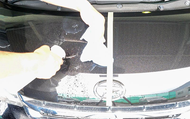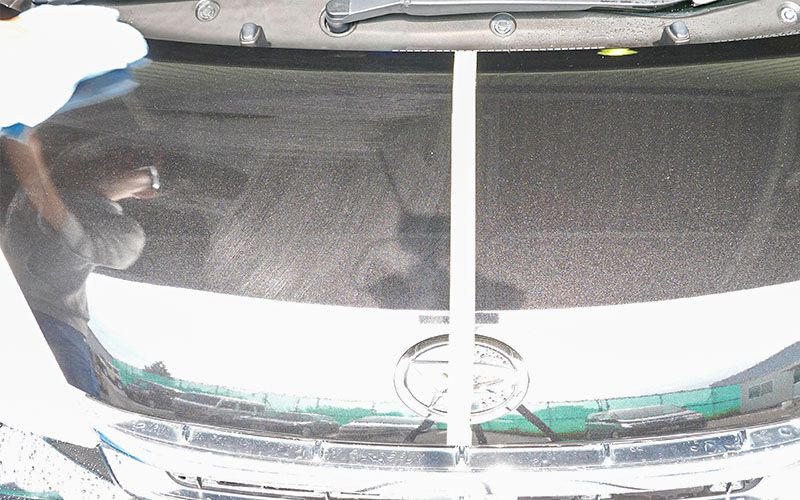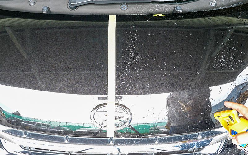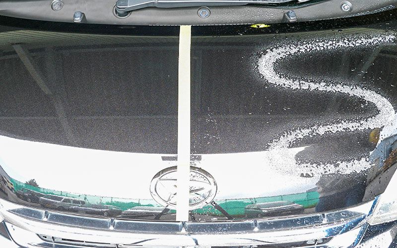 ②濡れたボディやガラスにスプレーします。※使用量は、1m四方に1秒が目安です。