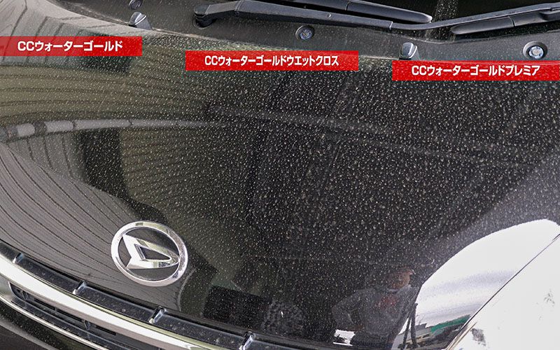 『CCウォーターゴールド』と『プレミア』は若干親水っぽくなっている部分があります。これは施工が甘かったのかな…?