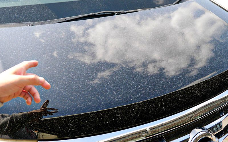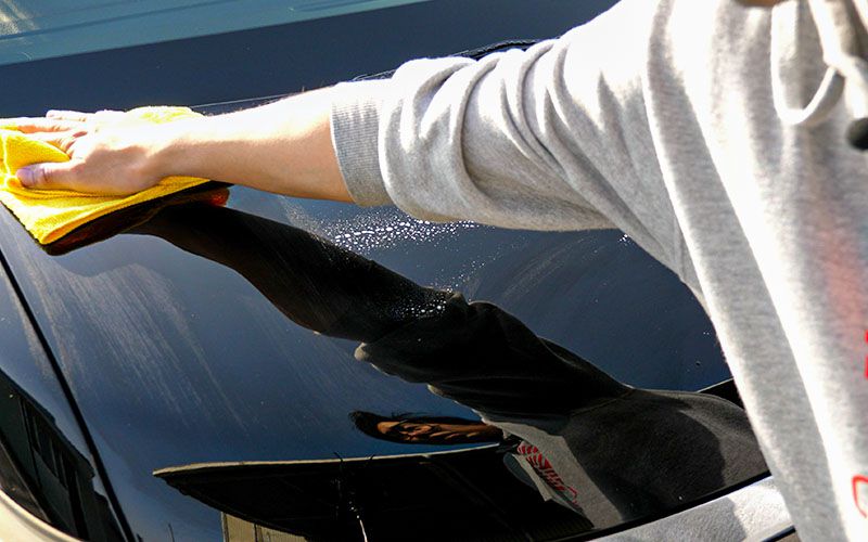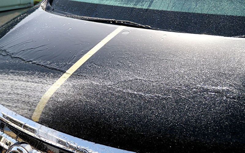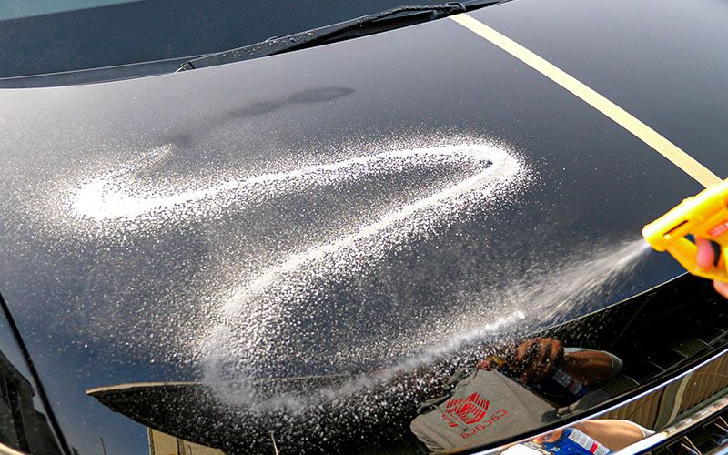 ②濡れたボディやガラスにスプレーします。※使用量は、1m四方に1秒が目安です。
