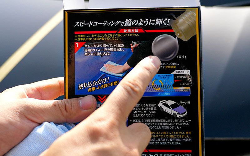 「付属のマイクロファイバークロスに液を取り、塗り広げていくだけ。ふき取り不要のスピードコーティング」とかなり面白そうな謳い文句なので、使うのが楽しみです。