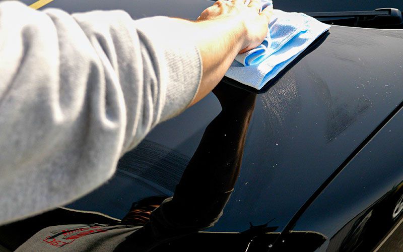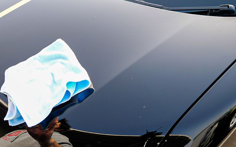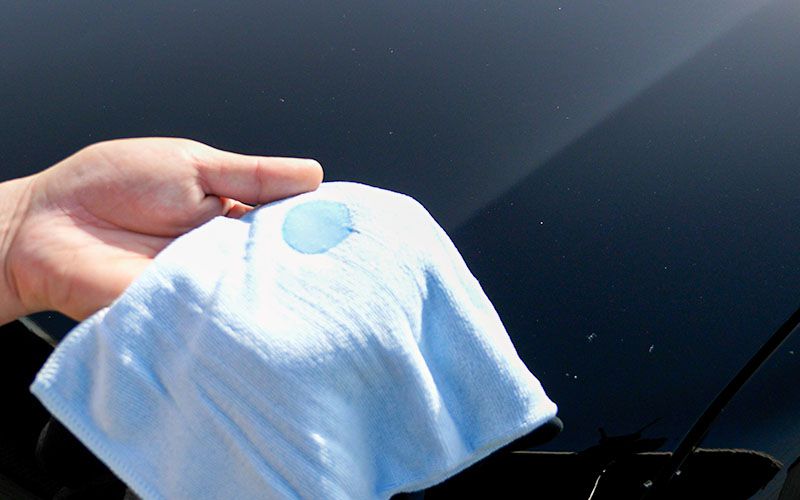 ③ボトルをよく振って、付属の専用クロスに液を適量つけ、ボディに塗り込むように施工してください。