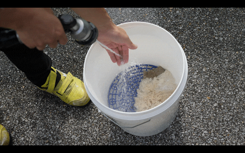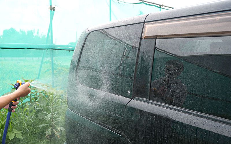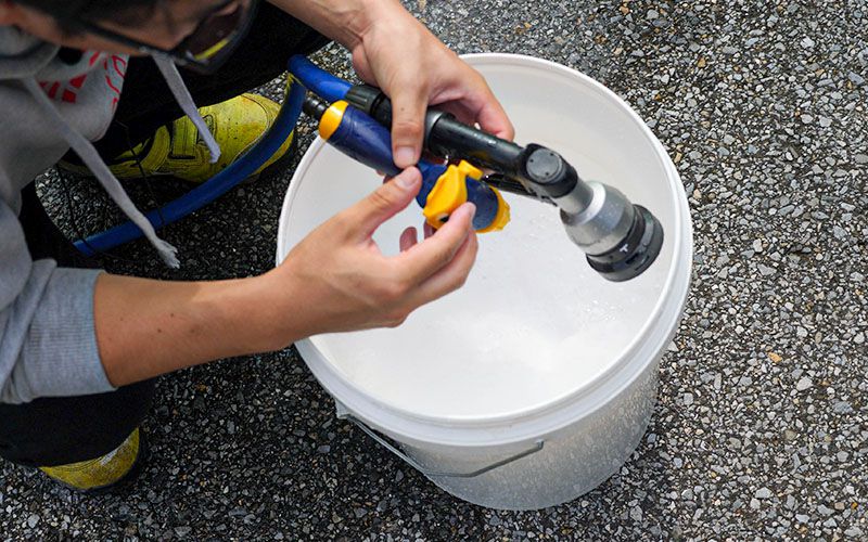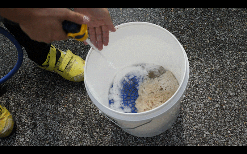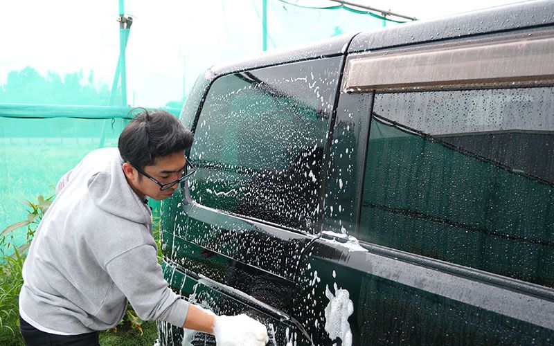 プロスタッフのカーシャンプー『ガチアワ』を使って洗います。