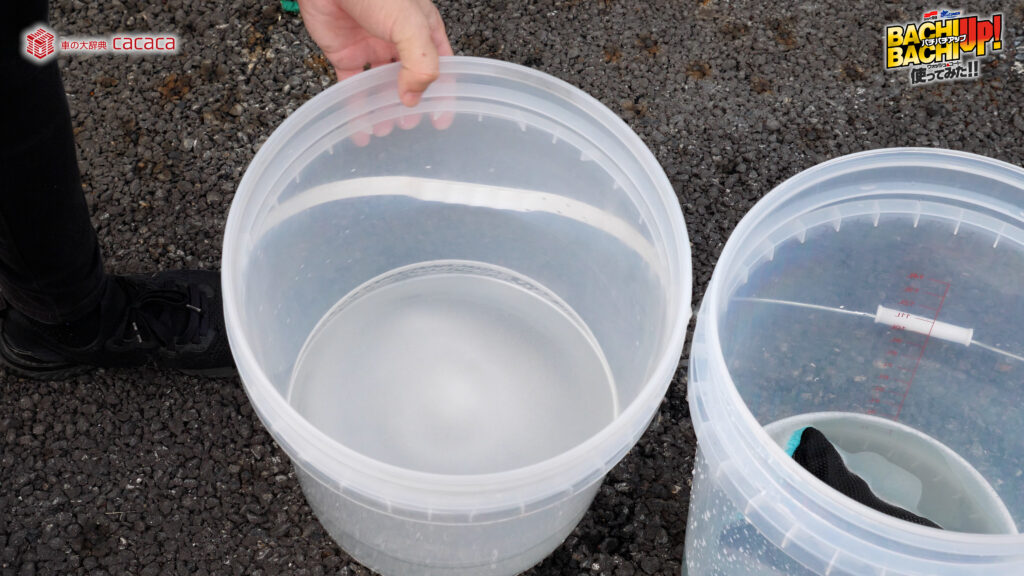 - ①洗車バケツを使用し水1Lに対して5プッシュの割合を基準に薄めて下さい。※中型車で3Lが使用量の目安となります。