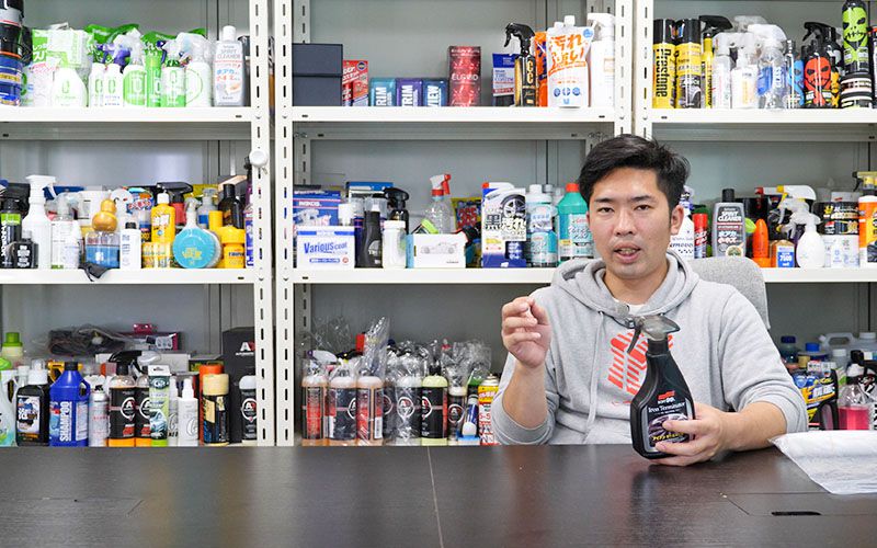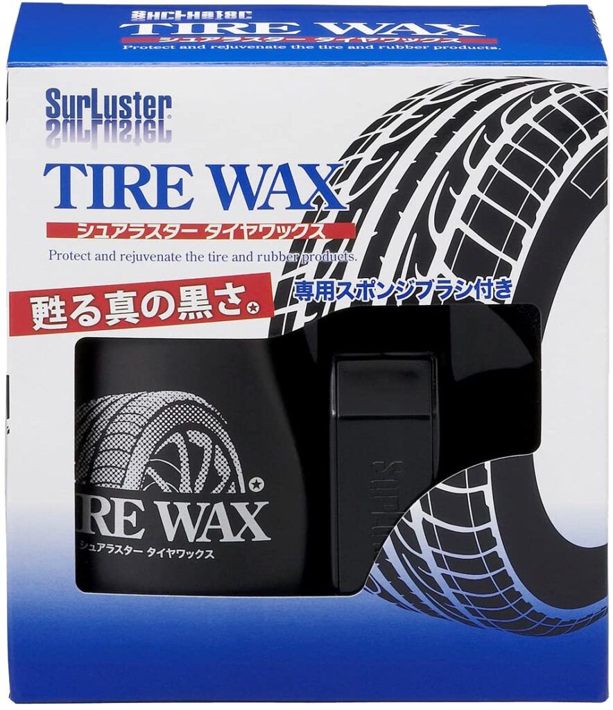 溶剤関係を使うと油分が飛んで、マットっぽくなるので、今回は少しリッチにシュアラスターの『タイヤコーティング+R』を施工します。