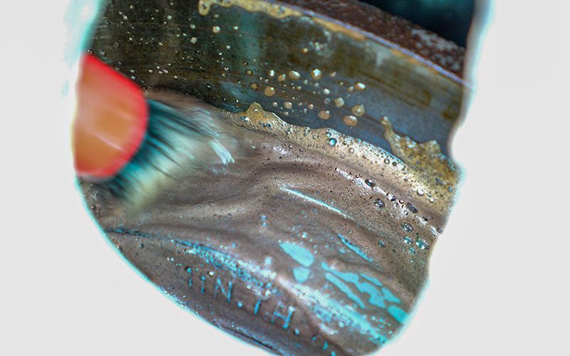 全体が紫色に反応したので、付属のスポンジで磨いていきます。