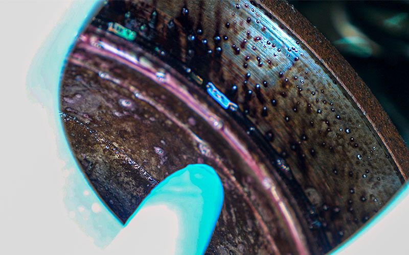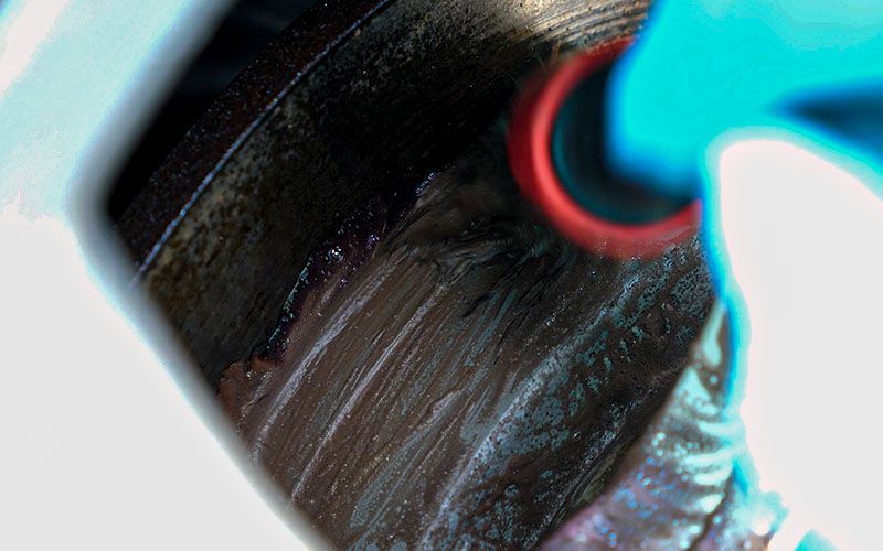 汚れが溜まっているディスクにも施工してみます。ここは鉄がむき出しなので、スプレーをかけたら必ず紫色に反応します。