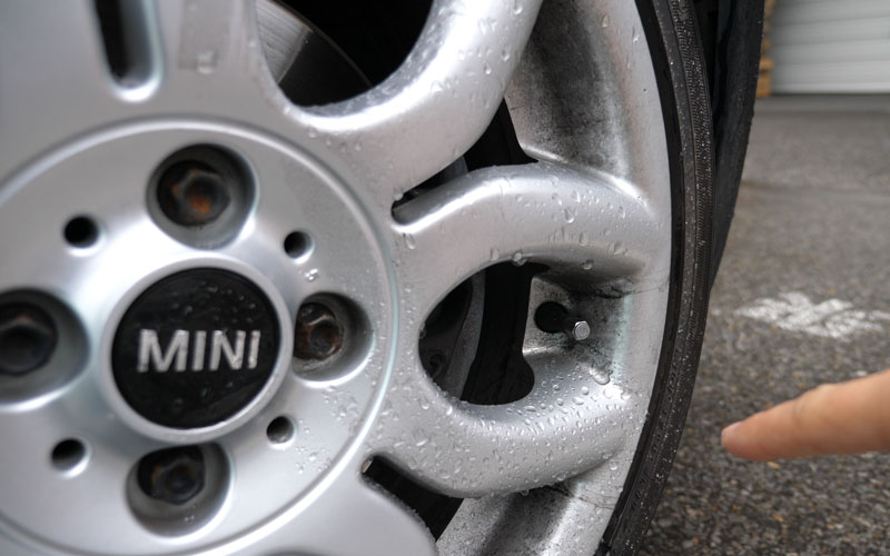 未施工の部分は、撥水というより水がホイールにベッタリ貼り付いているような感じです。これはかなり差がでましたね。