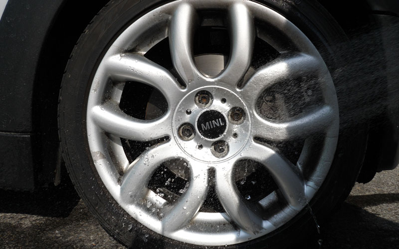 何週間と経過を見てきたわけですが、最後にホイール全体に水をかけてみて施工してあるホイールコーティング剤は機能しているのか、それと水の流れを見てみたいと思います。