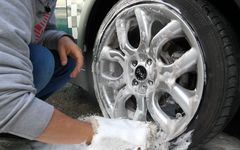 ① ホイールを洗浄し、水分をふき取り、完全に乾燥させる。