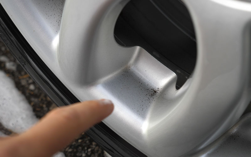 これは僕の予想ですが・・・ブレーキダストが雨などで流れてきた時にホイールに溜まってしまって汚れてしまうということなのではないでしょうか?