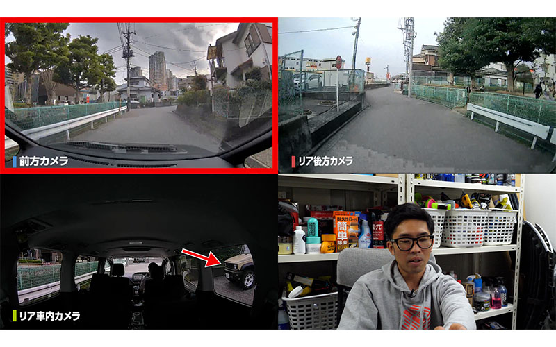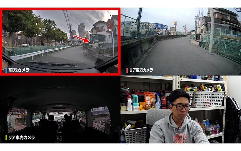 全方面3カメラということですが、死角が存在するのでどこまで映るのかも検証したいと思います。