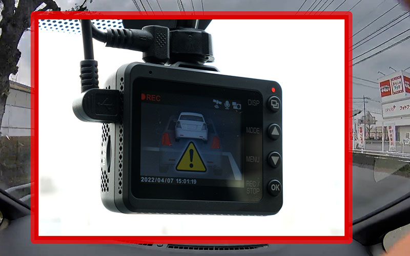 広角カメラであることにより、死角がより少なく、横から衝突された時にも証拠が残るといった感じですね。