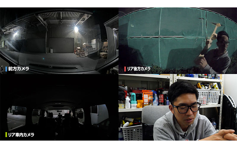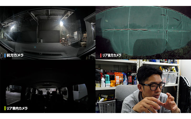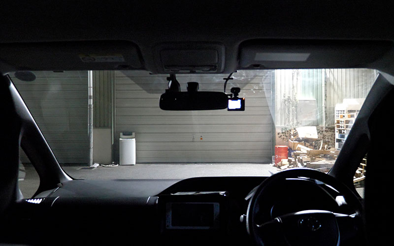 外に出てウロチョロするとドライブレコーダーが光って、警告音がなります。これだけでも犯罪の予防になりそうです。