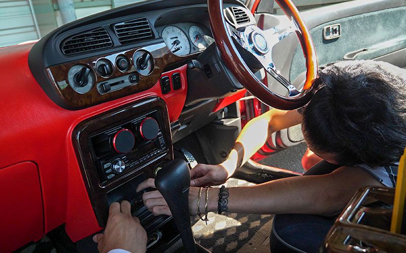 とりあえずギボシの修正が終わったので車に戻って配線を繋ぎます。