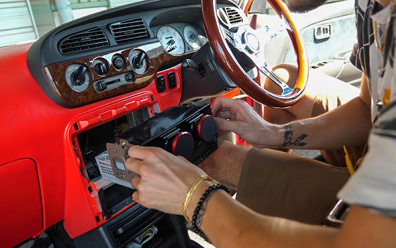 車に付いているオーディオを外しました。室内に持ち込んで新しいオーディオにステーを移植します。