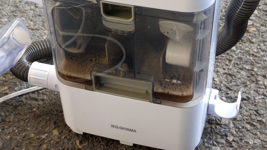 メチャメチャ汚い液体が溜まっています。激ヤバです。意外と綺麗に見えるシートでも同じように汚れが取れたりします。
