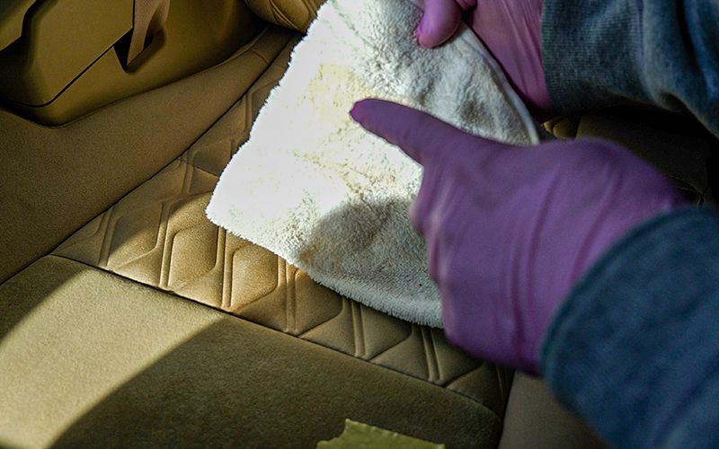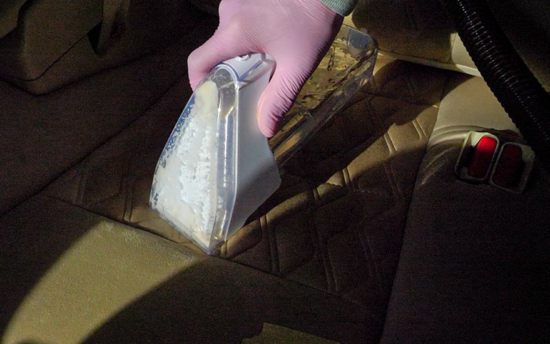またリンサーを使うとシート側の洗剤量と水分量をコントロールしやすくなります。何度も繰り返しになりますが、シートに付けた水分を汚れと一緒に吸い取るのが大切です。意識して作業してみてください。