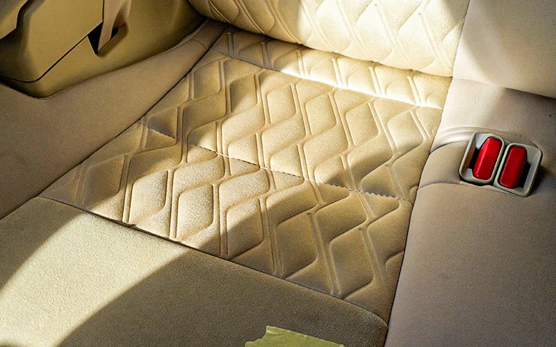 ベージュのファブリックなので汚れが目立つしシミになりやすい…。なかなか難しい内装の車両ですね。