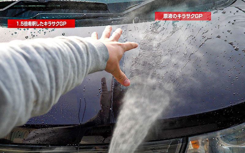 続いて1.5倍に希釈したキラサクGPを施工します。