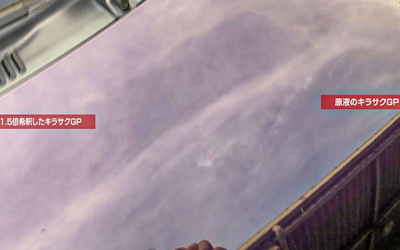 今回は『キラサクGP』を水で薄めたらどうなるのかの検証ということで、原液と希釈した物で比較を行いました。