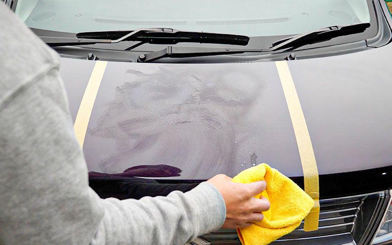 水が残った状態でも構いません。やわらかく清潔な布に液を適量付け、塗り伸ばしてください。やわらかく清潔な布でツルツルになるまで拭き上げてください。優れた光沢と撥水性が得られます。
