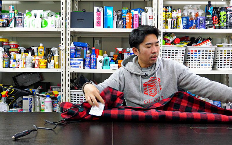 今回は12Vで使える電気毛布を使ってみました。使い方も簡単ですぐに暖まるので、購入して良かったです。