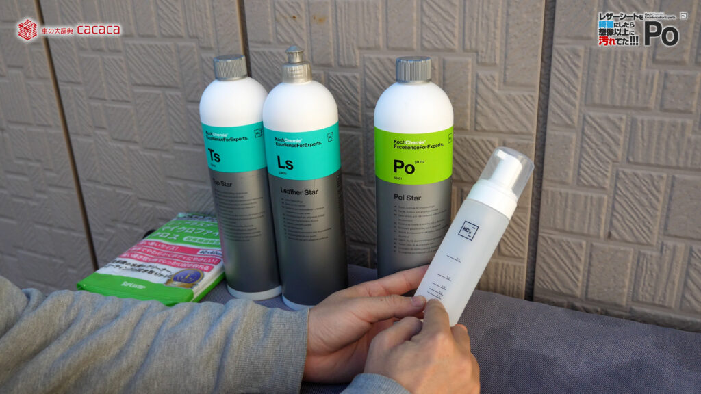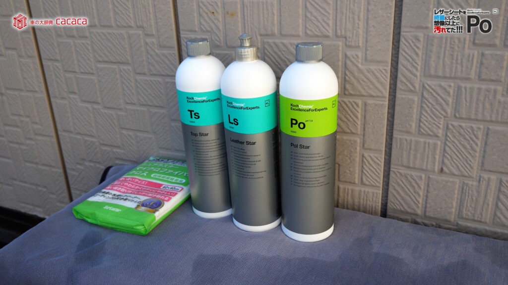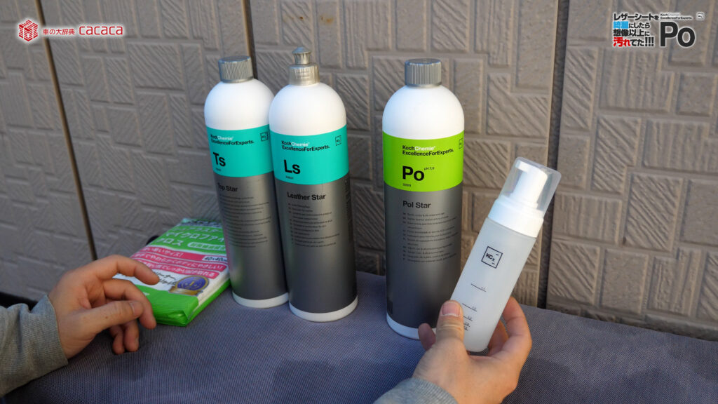 それと同時くらいに、レザーシートの綺麗に仕方もやってほしいとリクエストを頂いたので、どうせならということでコッホケミーで揃えてみました。