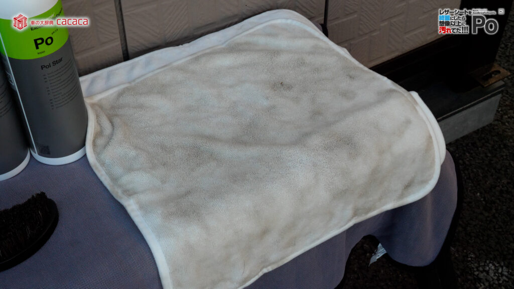 本当はこの後レザースター施工するんですが、一旦はクリーナーでどれだけ汚れが落ちたか見ていきます。