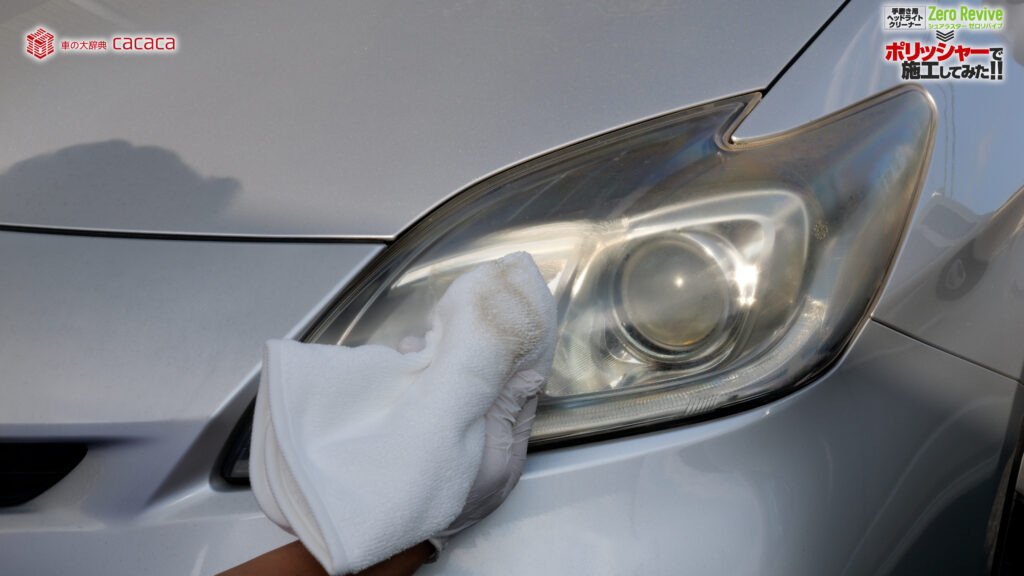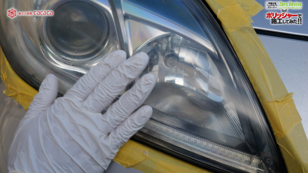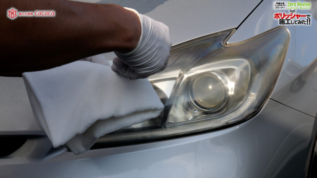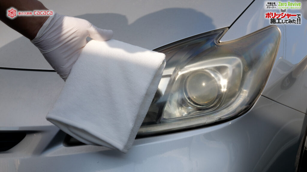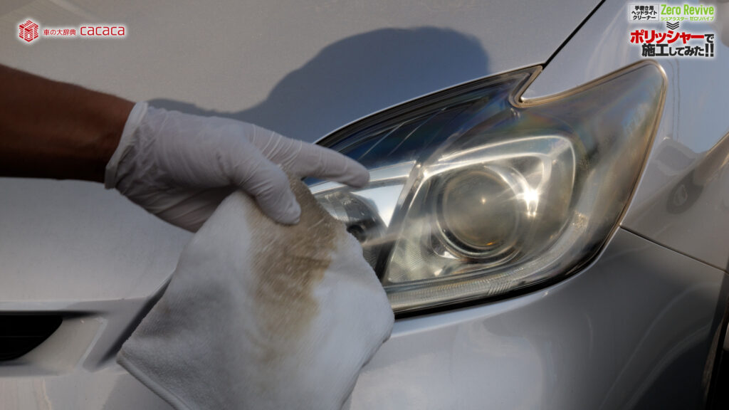 これ通常はクロスが付属されていて、手でヘッドライトを磨いていくんです。