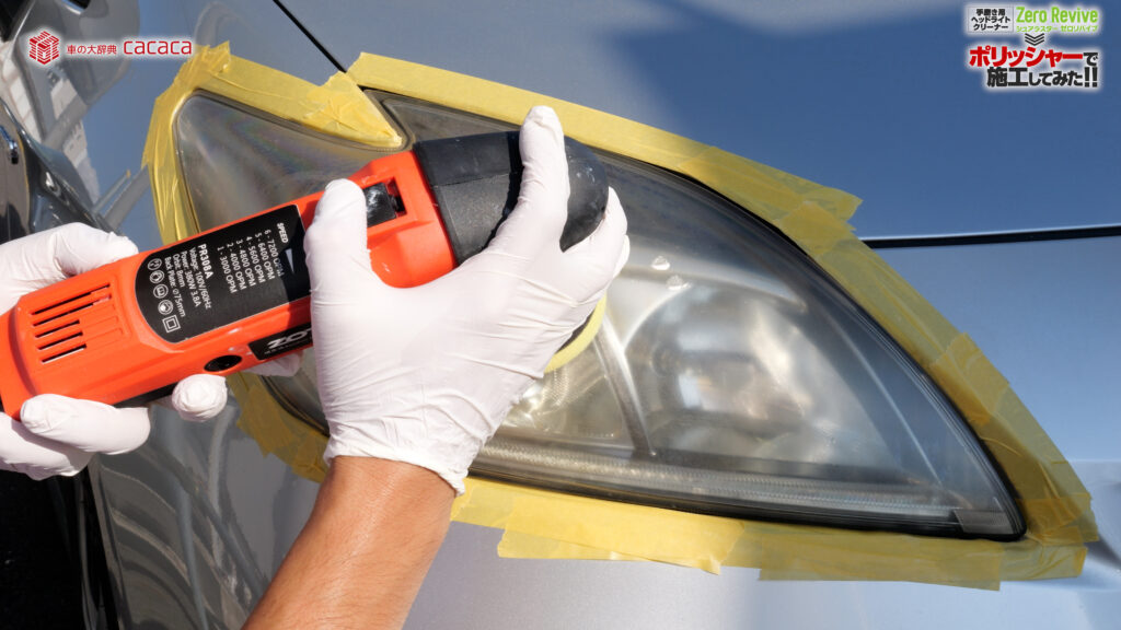シュアラスターのゼロリバイブというヘッドライトクリーナーをポリッシャーで施工したらどうなのかっていう検証をしてみました。