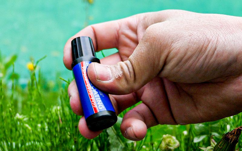 スポンジはテーパー加工が施され、先端が細くなっているので細やかな隙間にもしっかり塗り込めるようになっているとのこと。そして液剤の容器がガラスではなく、プラスチック容器になっています。