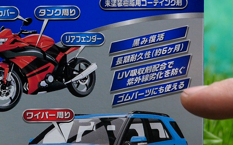色あせたバンパーやフェンダーなどの黒ツヤを復活させることができる未塗装樹脂用のコーティング剤ですね。