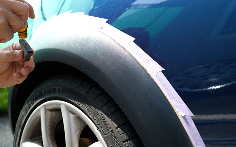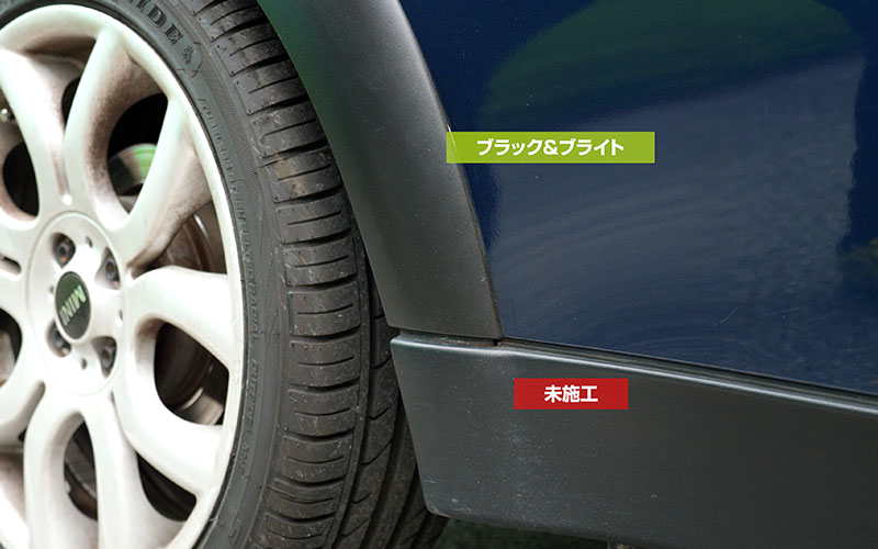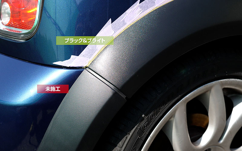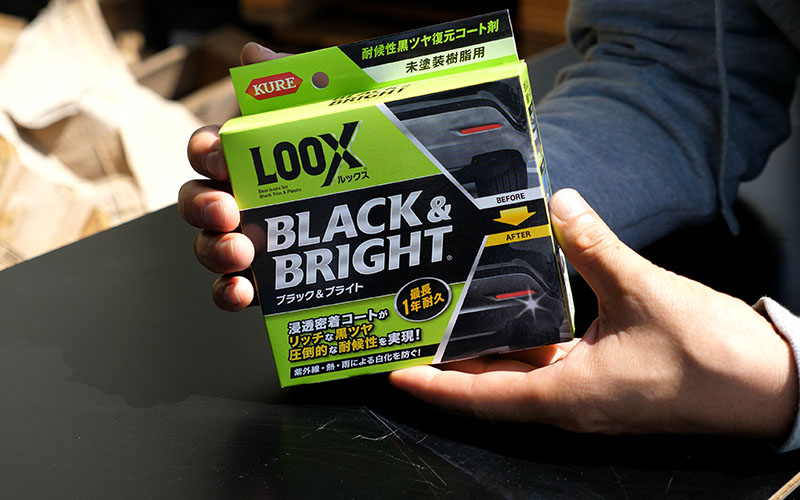 塗装がされてない樹脂パーツは劣化によって白くなってくるので、それを黒く戻すっていう商品、いわゆるコーティング剤です。