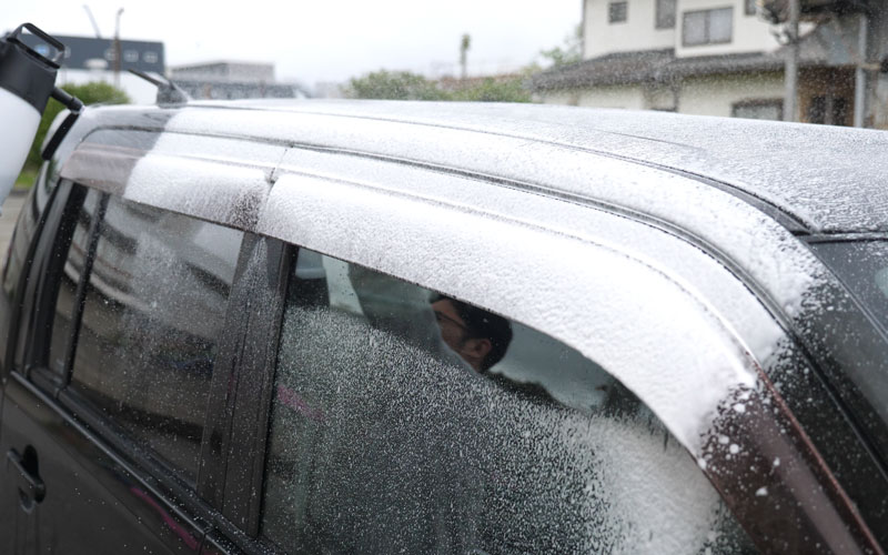 フロントガラスも未施工、ルーフもまったくできていませんでした。それ以外の部分は問題なくできましたが、シャンプーが尽きてしまいました。