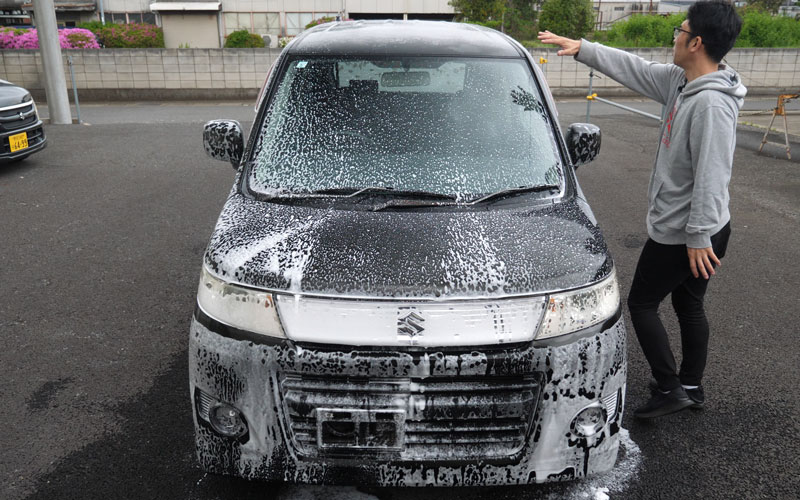 特に前が中途半端に終わってしまっていて、ボンネットはほぼ泡が届いてない。