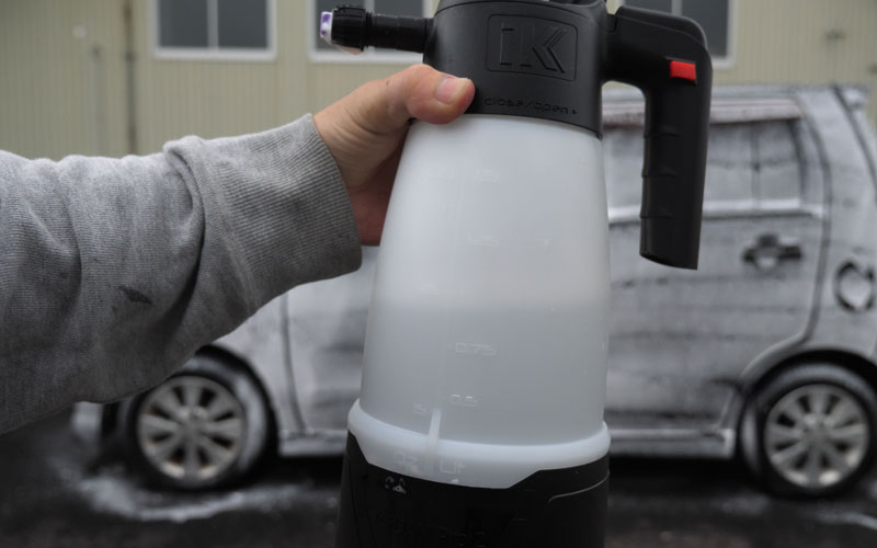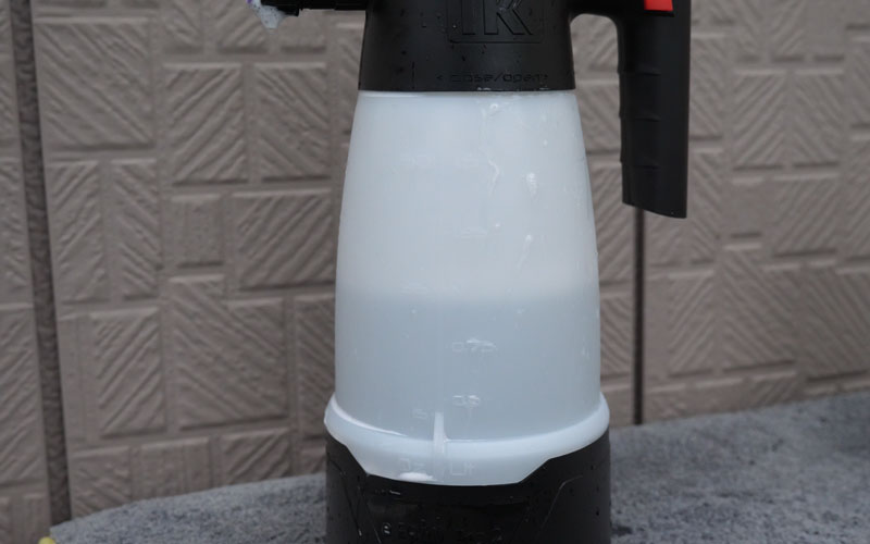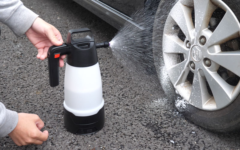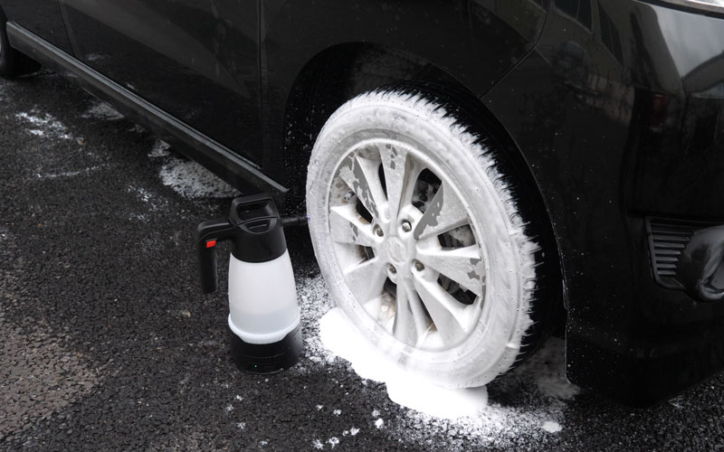 デメリットを挙げるとすれば、価格の高さ、作動音の大きさ、そして容量ですね。1.5Lでは足回りの洗車には十分ですが、ボディ全体を一度で洗うには少し物足りないかもしれません。その場合は、もっと大容量のモデル(バッテリータイプ)『iK e FOAM Pro12』を選んだ方が良いでしょう。
