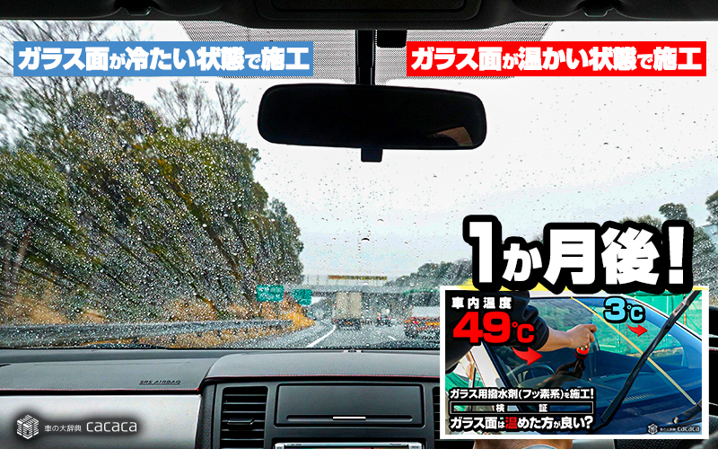 僕はガラス面を温めて施工した方が水滴が飛んでいる気がしたけど、プラシーボ効果だと思います。