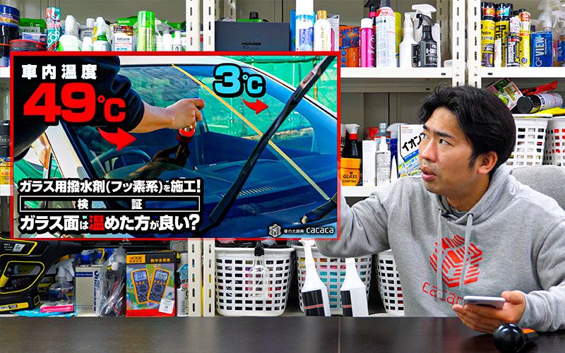 前に「ガラス用撥水剤を施工する時はガラス面を温めた方が良いのか?」という検証を行いました。