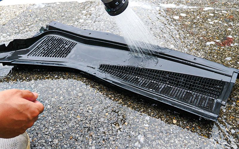 とりあえず現状はとても汚れており、このままだと復活剤が定着しづらかったりするのでブラシを使ってしっかり洗います。