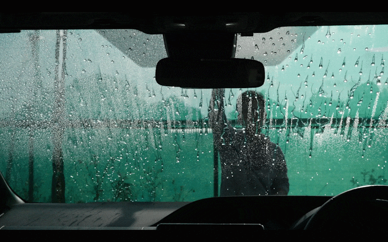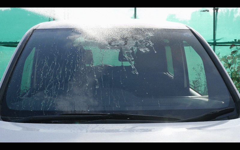 車内からも見てみます。298円でこの撥水力…。僕は十分だと思います。