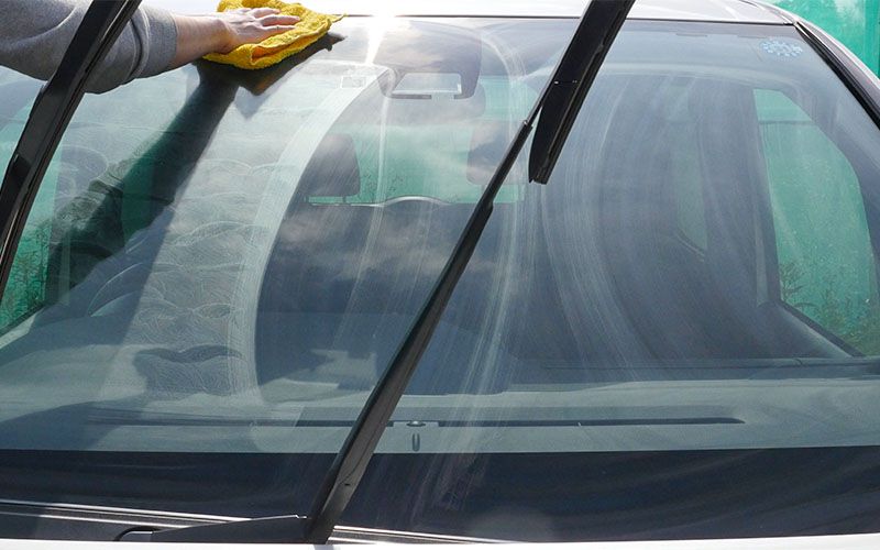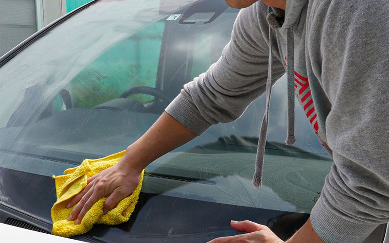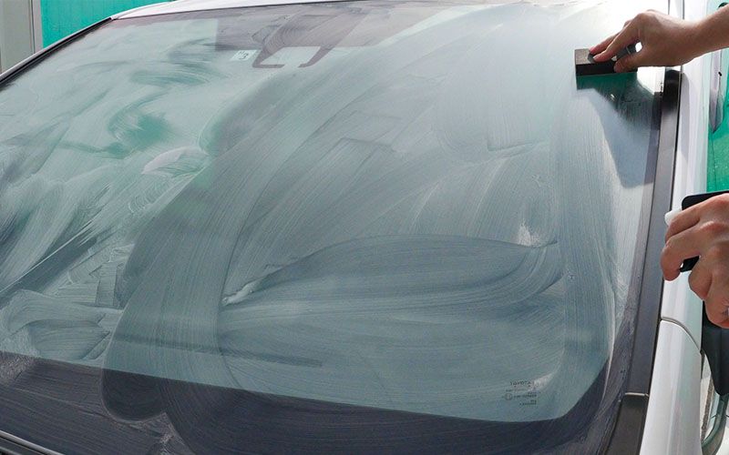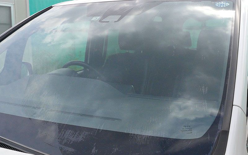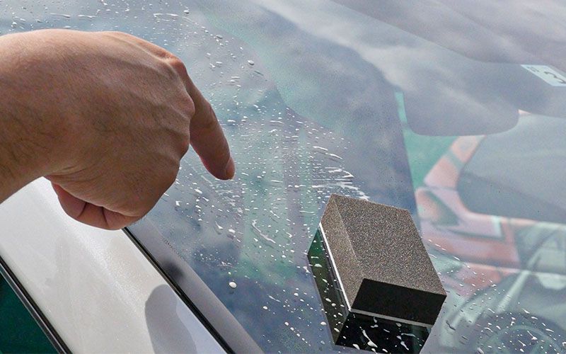 フロントガラスを『水アカとりパッド』で下地処理をする