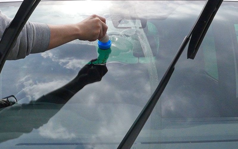 フロントガラスにカインズのガラスコーティング剤を施工する