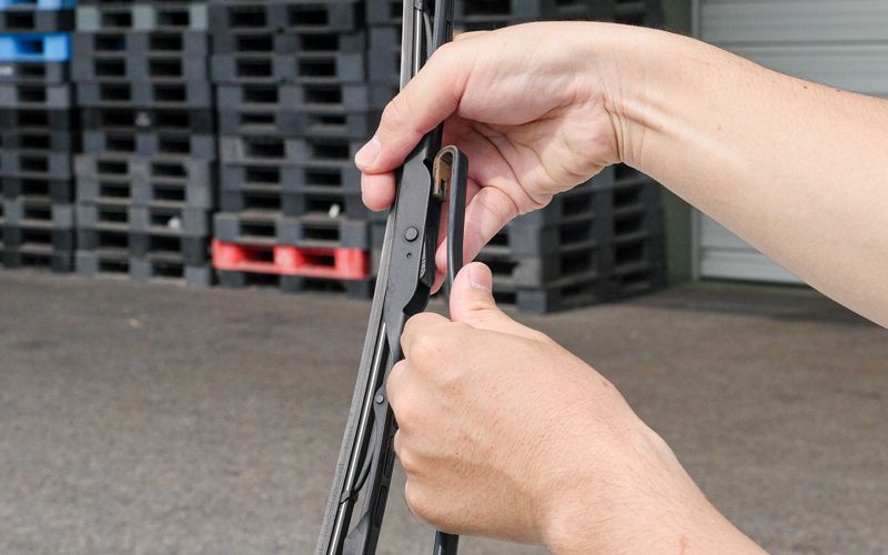 次に新しいワイパーを用意して、ストッパーのような物があるのでそれを上げて空間を作り、その部分にアームを引っかけるようにしてはめ込み外側に引っぱると取付けられます。