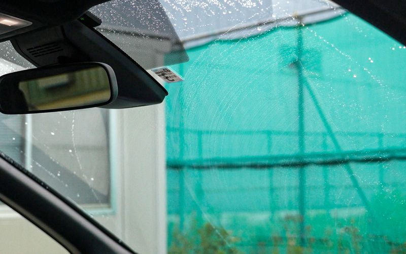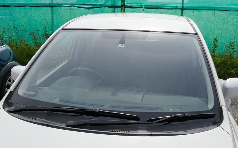 指差している部分は筋が残っていますがこれはワイパーの形状の問題で仕方ありません、しかし交換前のような拭き筋は残っていませんでした。