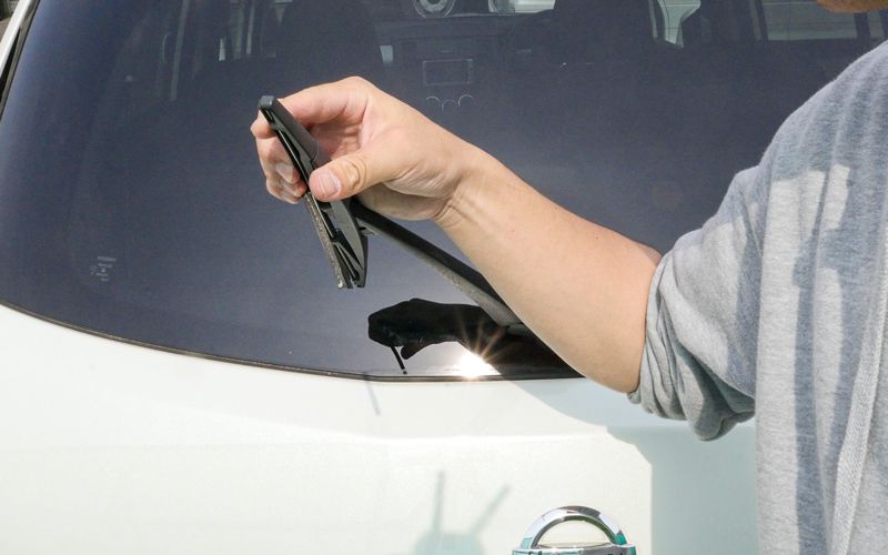 外し方はワイパーを持ち上げて手前側に傾けるとストッパーのようなものが出てきますので、それを押し上げながら手前に引くと外れます。
